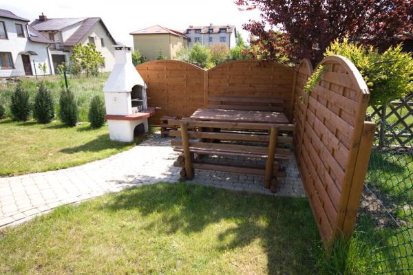 Na ogrodzonej posesji można po grillować i bezpłatnie zaparkować samochód. Dostępny jest także plac zabaw dla dzieci.
