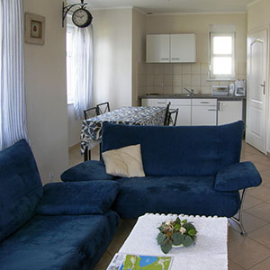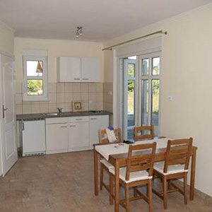 Każdy domek składa się z pokoju dzienngo z całkowicie wyposażonym aneksem kuchennym, łazienki i 2 osobnych sypialni.